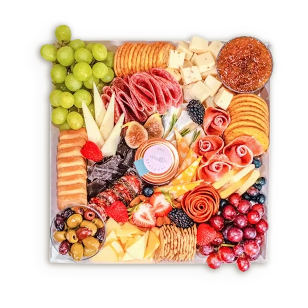 A mix of our domestic and imported cheeses, meats, seasonal fruits, and veggies, accented with crackers, jams, honey, and olives. Special requests available for an extra charge